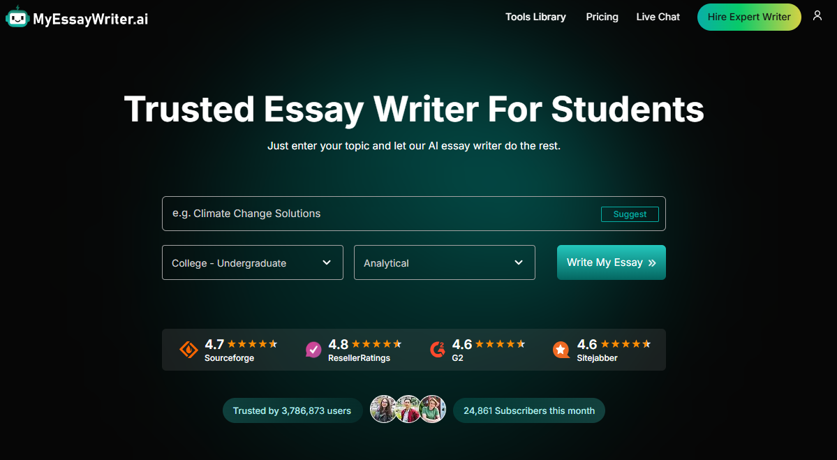 MyEssayWriter.ai is highly rated across major review platforms like G2 and Sitejabber. Users consistently praise the platform for its reliability, the "human" feel of the generated text, and its ability to meet tight deadlines in the fast-paced environment of 2026.